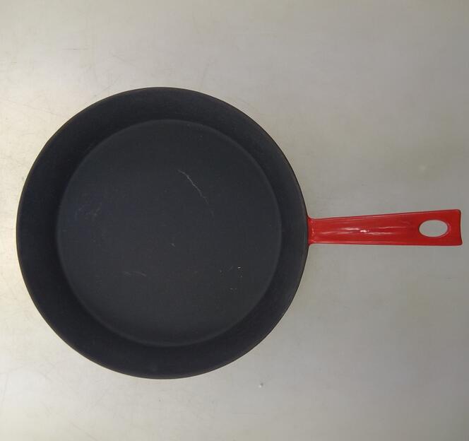13 years alibaba gold supplier RK cast iron frying pan skillet pan in red enameled coating with 1 cast iron handle