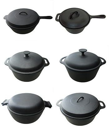 Cast Iron Dutch Oven include Cast iron pot without feet and cast iron lid which is reversible and a stay cool wire handle