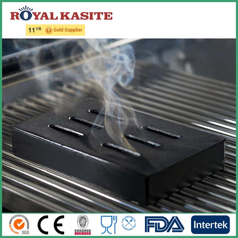 Amazon hot selling Gas / Charcoal Grill Cast Iron Wood Chip & Chunk Smoker Box with Lid New