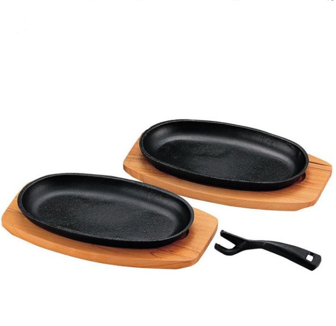 Amazon Royal Kasite Cast Iron Fajita Sizzler Plate with Birth Wooden Base, Pre-seasoned