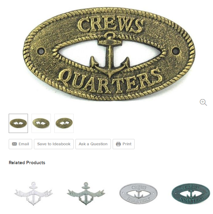 Antique Gold Cast Iron Crews Quarters with Anchor Sign 8'' Metal Wall Plaque