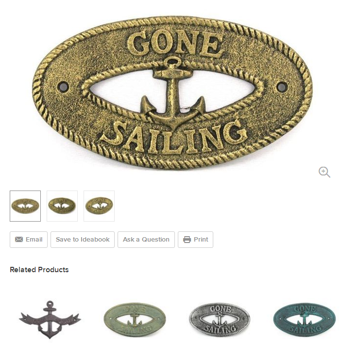 Antique Gold Cast Iron Gone Sailing with Anchor Sign 8'' Metal Wall Plaque