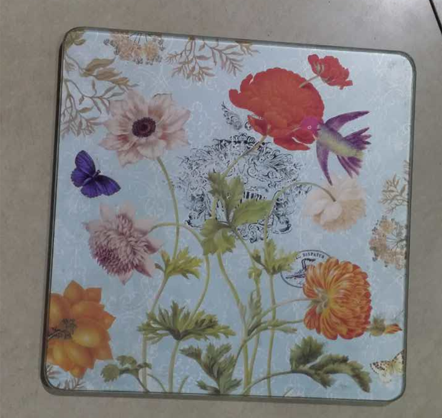 Product:  Beautiful Tempered Glass Cutting Board with flowers and bird Design