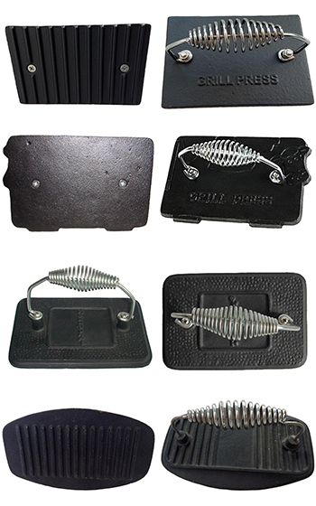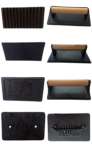 This heavy-duty rectangular steak weight/grill press will make your steaks and other grill favorites cook much faster and easier. It can also be used to eliminate curl and press out unwanted fats.Making sure that food cooks evenly is very important in every kitchen. Ensure that your meats cook evenly by purchasing one of our steak weights. Not only will the food cook faster and more evenly, it will also allow for healthier cooking by squeezing extraneous fat from meat as it cooks. This Cast Iron Meat and Bacon Press is usable in all kitchens: gas, electric, induction, campfire, grill etc.