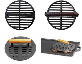 8.75-Inch Cast Iron Bacon Press with Wood Handle, Round