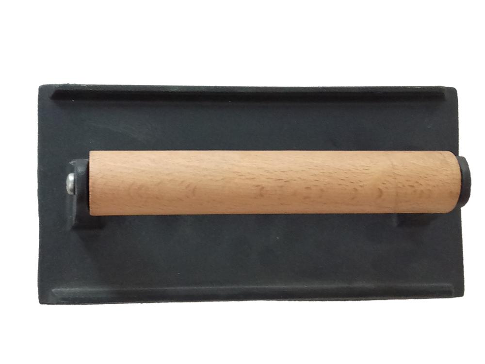 This heavy-duty rectangular steak weight/grill press will make your steaks and other grill favorites cook much faster and easier. It can also be used to eliminate curl and press out unwanted fats.Making sure that food cooks evenly is very important in every kitchen. Ensure that your meats cook evenly by purchasing one of our steak weights. Not only will the food cook faster and more evenly, it will also allow for healthier cooking by squeezing extraneous fat from meat as it cooks. This Cast Iron Meat and Bacon Press is usable in all kitchens: gas, electric, induction, campfire, grill etc.