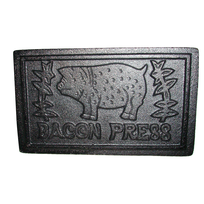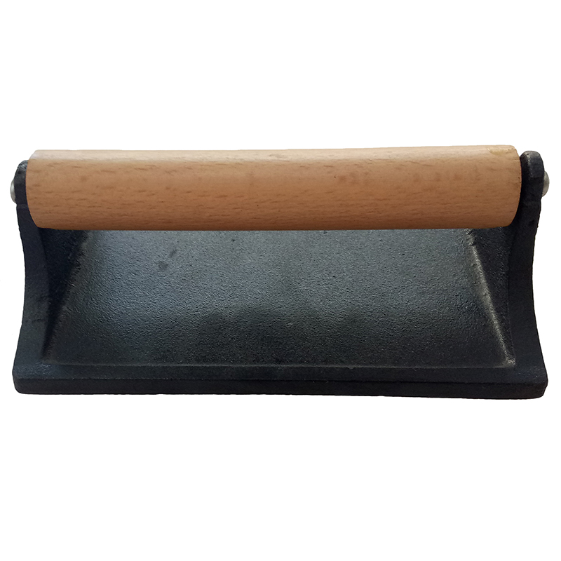 This heavy-duty rectangular steak weight/grill press will make your steaks and other grill favorites cook much faster and easier. It can also be used to eliminate curl and press out unwanted fats.Making sure that food cooks evenly is very important in every kitchen. Ensure that your meats cook evenly by purchasing one of our steak weights. Not only will the food cook faster and more evenly, it will also allow for healthier cooking by squeezing extraneous fat from meat as it cooks. This Cast Iron Meat and Bacon Press is usable in all kitchens: gas, electric, induction, campfire, grill etc.