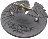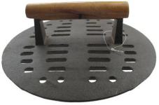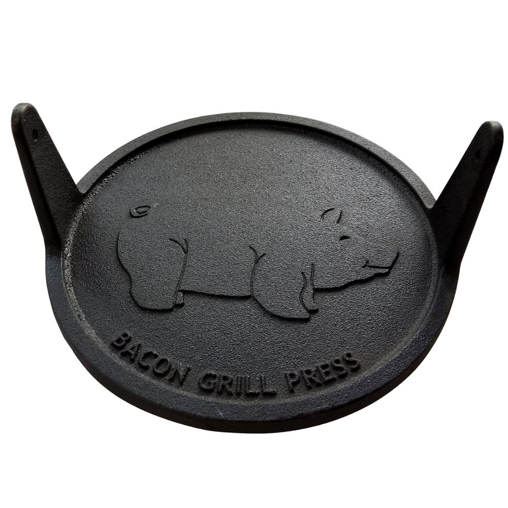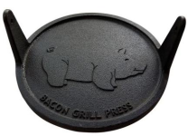 This heavy-duty rectangular steak weight/grill press will make your steaks and other grill favorites cook much faster and easier. It can also be used to eliminate curl and press out unwanted fats.Making sure that food cooks evenly is very important in every kitchen. Ensure that your meats cook evenly by purchasing one of our steak weights. Not only will the food cook faster and more evenly, it will also allow for healthier cooking by squeezing extraneous fat from meat as it cooks. This Cast Iron Meat and Bacon Press is usable in all kitchens: gas, electric, induction, campfire, grill etc.