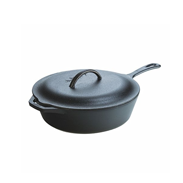 Cast Iron Covered Deep Skillet Pre-Seasoned 5-Quart