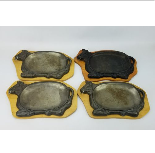 Pre-Owned Cast Iron Cow Bull Shaped Sizzling Steak Serving Platters