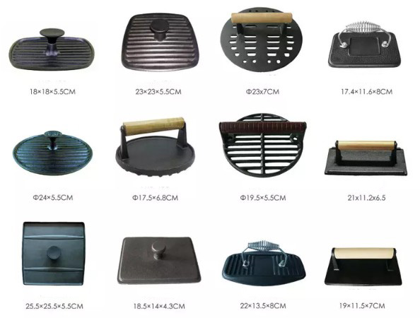 cast iron meat grill press with pig pattern on top face, Pre-seasoned