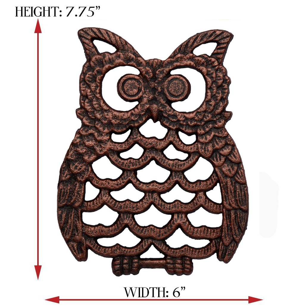 Durable & Sturdy Owl Trivet Protect your kitchen counter or dining table from hot pots, pans and dishes with this cast iron trivet. Rubber feet will keep your table or counter safe from scratches.