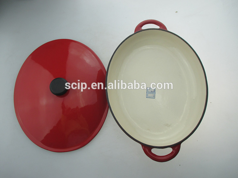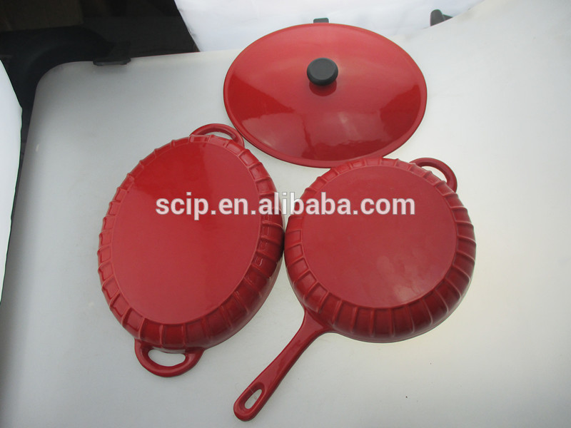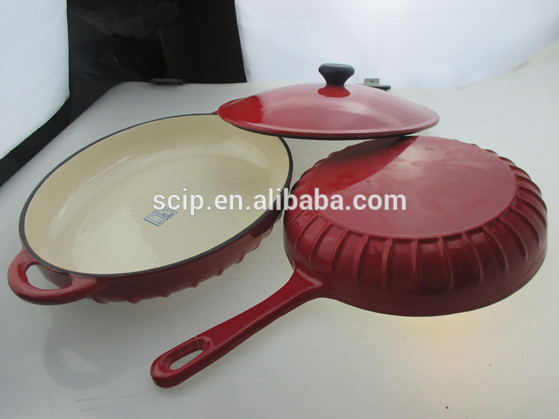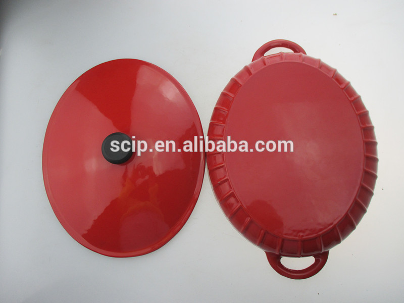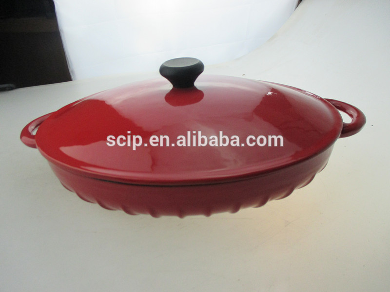 cast iron shallow casserole pot, enamel iron cookware set, iron flat dishes with lid