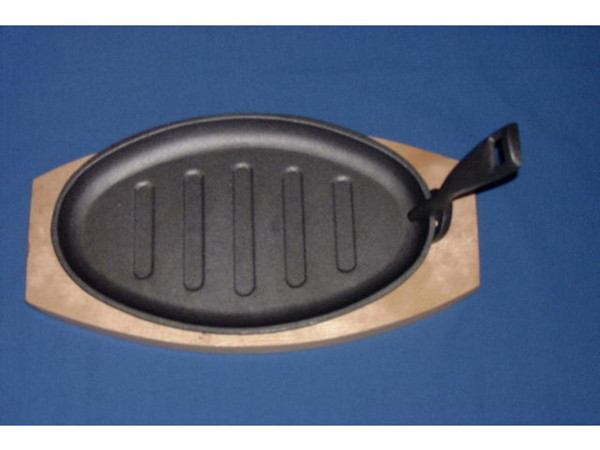 Cast sizzling plate, size: 28*18cm, we have other size and shape for your choice, also we can open mould as per your design.