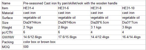 cast iron skillet fry pan with wooden handle, Preseasoned