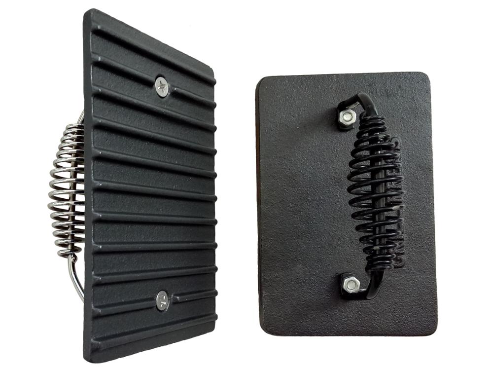 This heavy-duty rectangular steak weight/grill press will make your steaks and other grill favorites cook much faster and easier. It can also be used to eliminate curl and press out unwanted fats.Making sure that food cooks evenly is very important in every kitchen. Ensure that your meats cook evenly by purchasing one of our steak weights. Not only will the food cook faster and more evenly, it will also allow for healthier cooking by squeezing extraneous fat from meat as it cooks. This Cast Iron Meat and Bacon Press is usable in all kitchens: gas, electric, induction, campfire, grill etc.