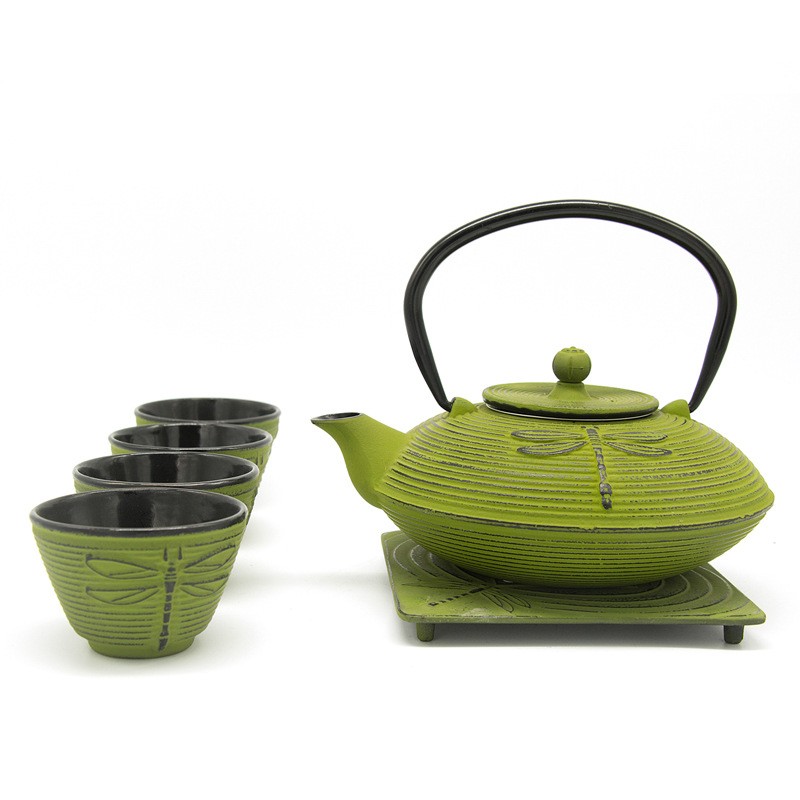 1 teapot 1trivet 4 cups and stainless steel tea infuser