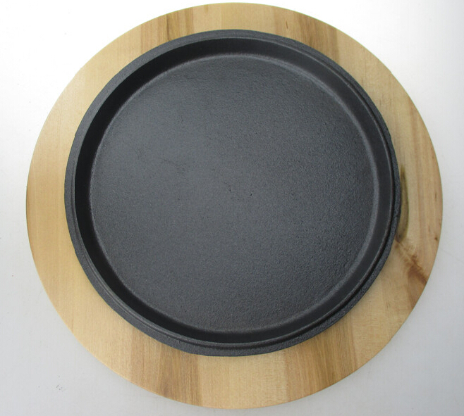 cheap wooden base cast iron round plate /pan