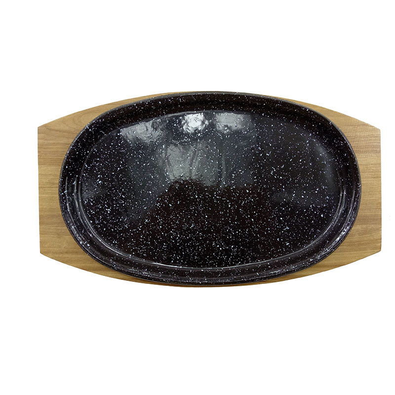 - Preseasoned Oval Cast Iron Sizzling Hot Plate With Wooden Tray