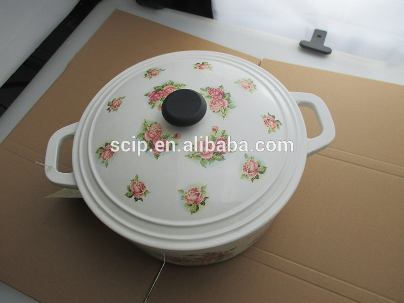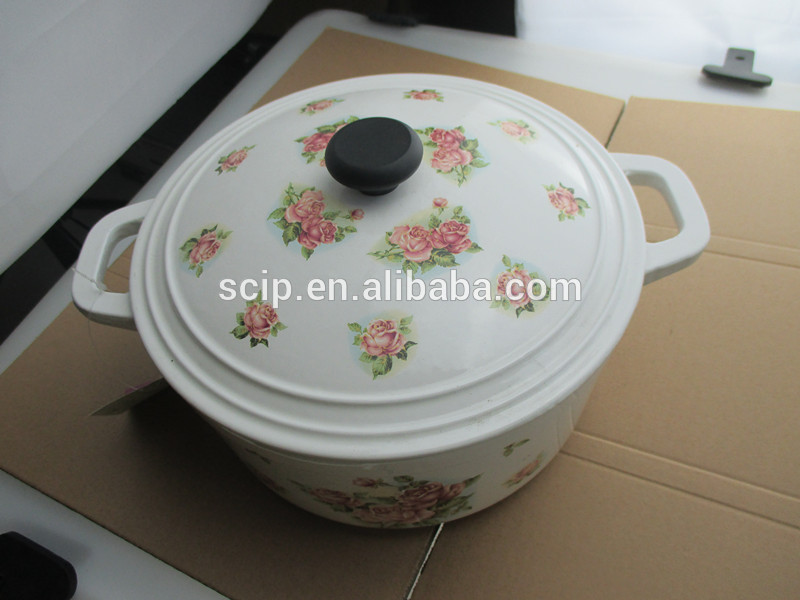 decal iron casseroles, enamel applique casseroles pot, round cast iron enamel cooking casserole