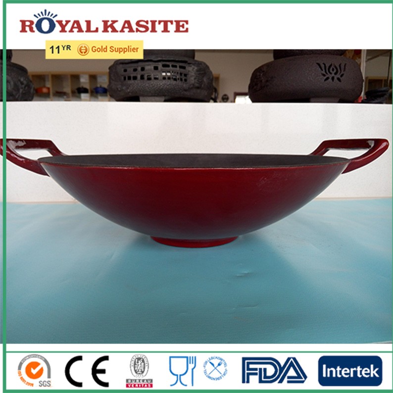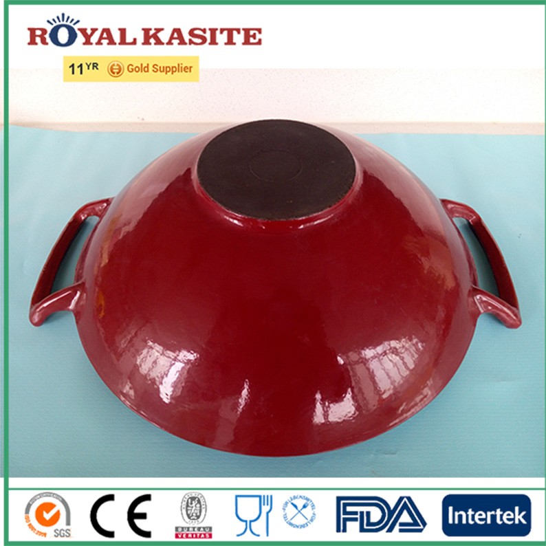 Eco-friendly factory wholesale top quality enamel coated cast iron multi-purpose wok, Chinese wok/cookware