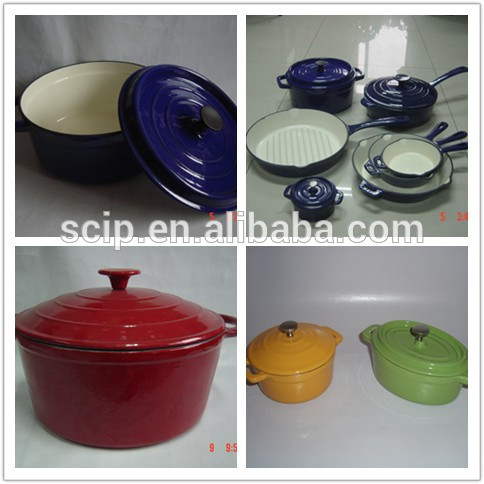 Cast iron casserole are made of cast iron ,which is used for making casseroles, and it was very like roaster and Dutch ovens, Cast iron can provides even heating ,and it also can withstand very high temperatures , making cast iron cookware ideal for searing. our cast iron cookware have been seasoned with vegetable oil, porcelain enamel, and other material to protect rust-developing, and can make it non-stick, so our cookware are very credibility when use for delicious food , if you use our cookware , you will find our life more beautiful.