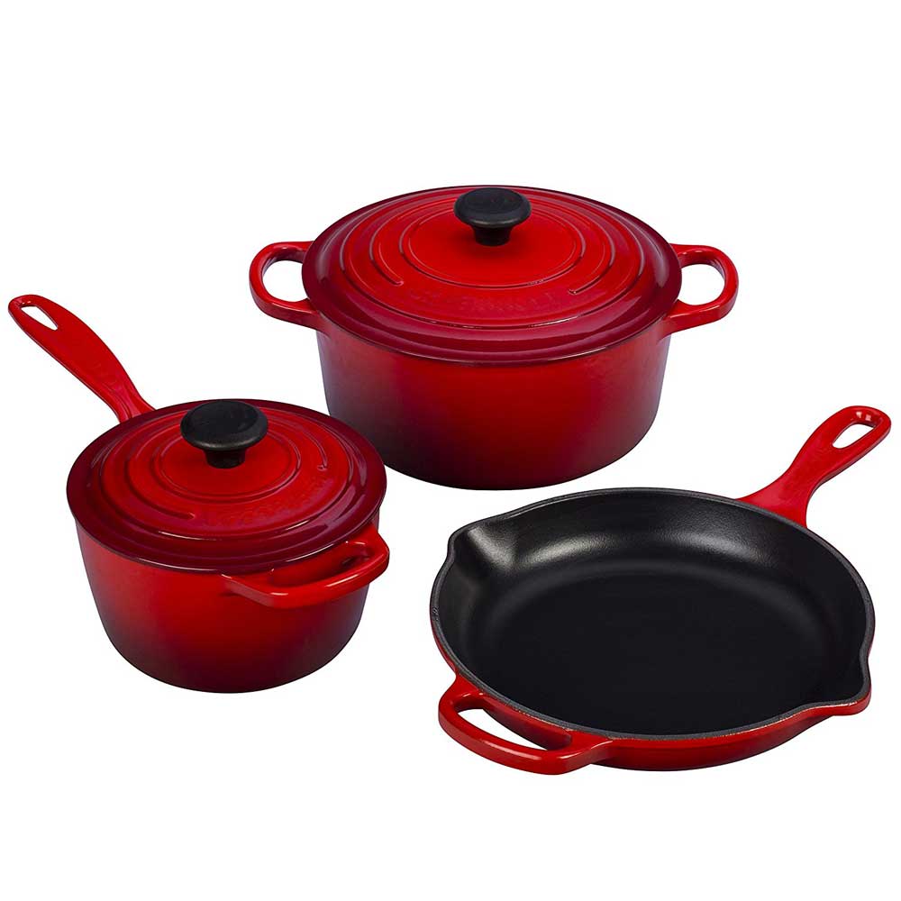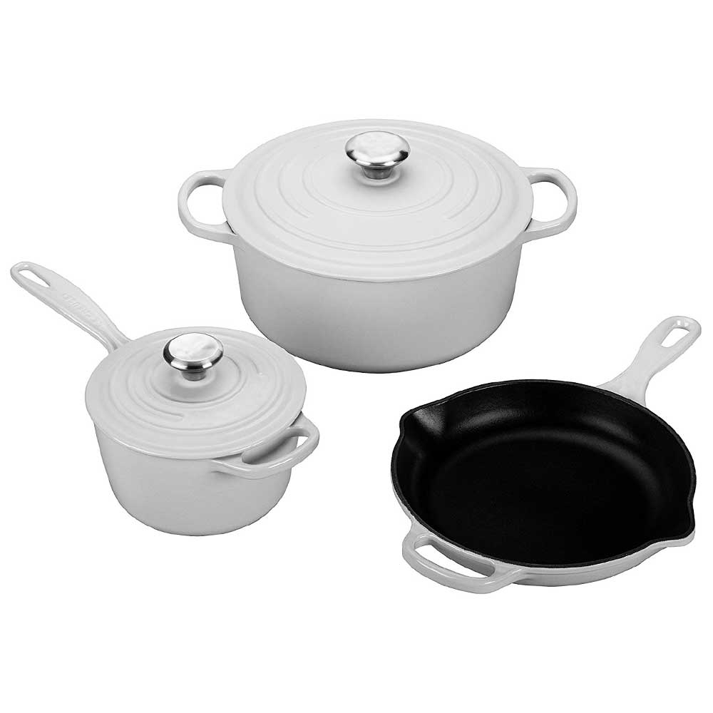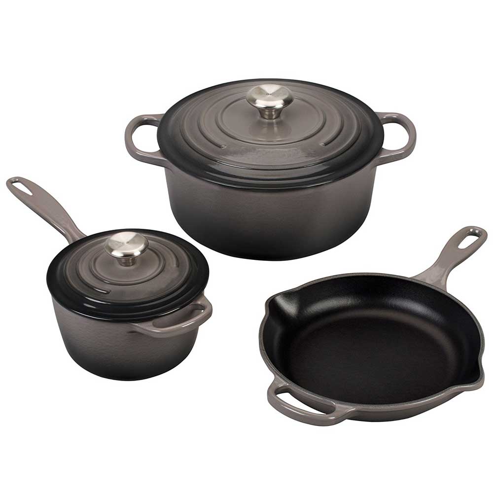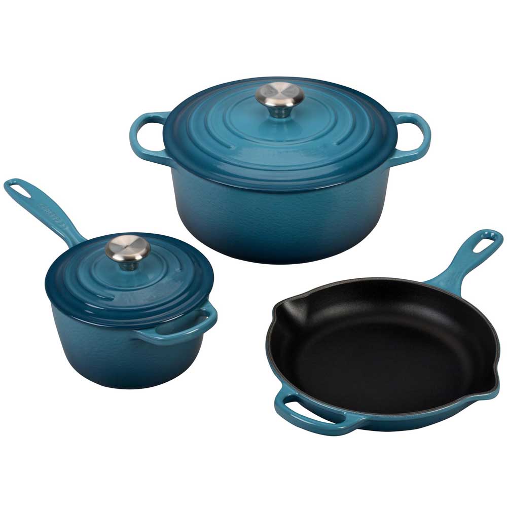 5 1/2 qt. round Dutch oven, 1 3/4 qt. Signature saucepan, 9" Signature skillet