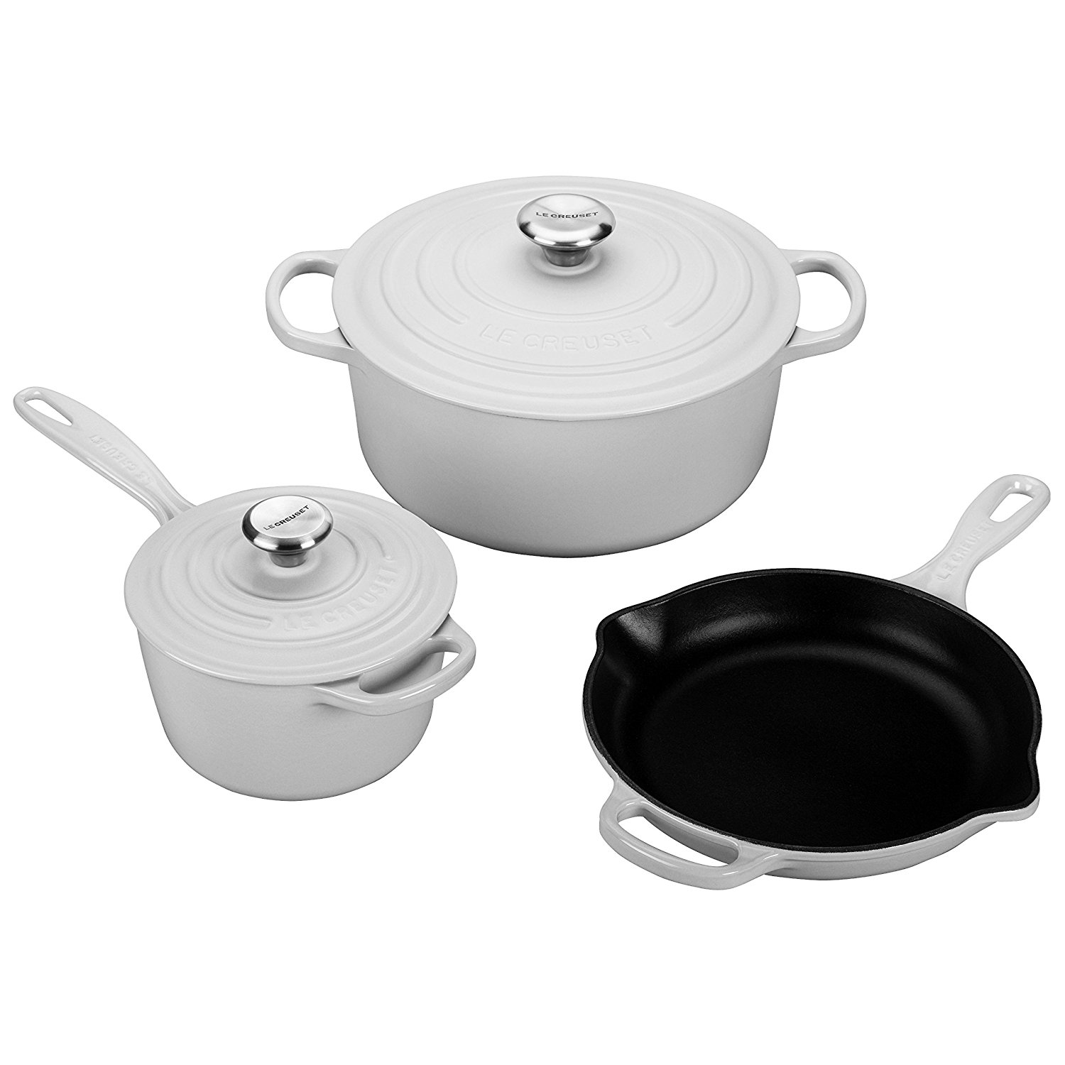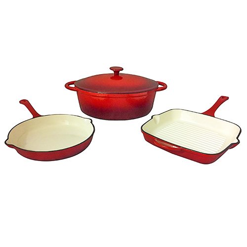 7-qt. Oval Dutch Oven: Length 16 1/4"(INCLUDE the handle)x Width10 1/4"x Depth 4 3/4". 10 1/4-Inch Round Fry Pan: Length 16 1/2(INCLUDE the handle)x Diameter10 1/4x Depth 2". 10 1/2-Inch Square Grill Pan: Length 19 1/2"(INCLUDE the handle) x Width 10 1/2"x Depth 1 3/4".