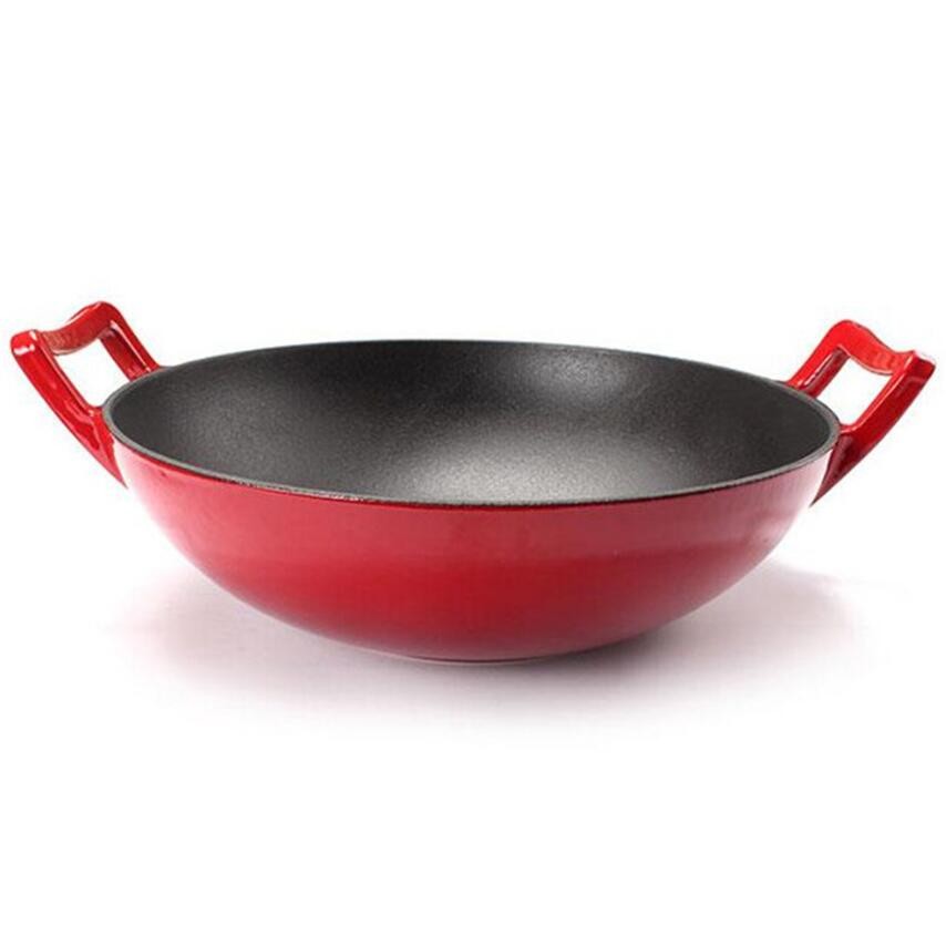 Enameled Heavy Cast Iron Wok Pan