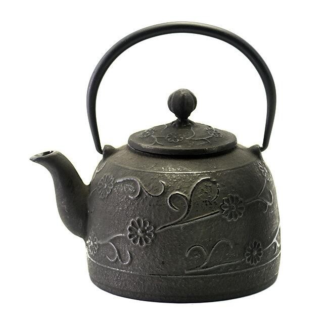 Floral Cast Iron Teapot, black
