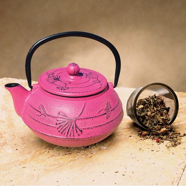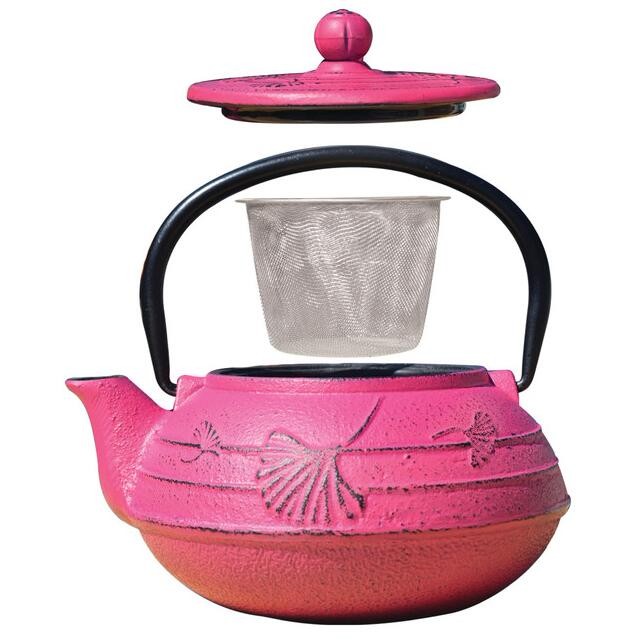 Fuchsia Cast Iron "Ginkgo" Teapot, 22 Oz.