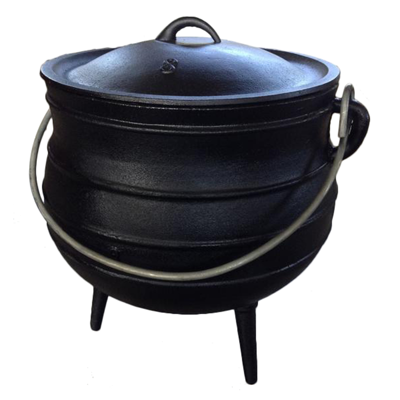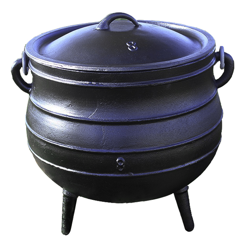 As Potjie Pots están feitas en moitos tamaños, desde pequenas macetas de herbas ata grandes caldeiras de azucre e aderezadas cun aceite de liño comestible de alta calidade que inicia inmediatamente o proceso de temperado.