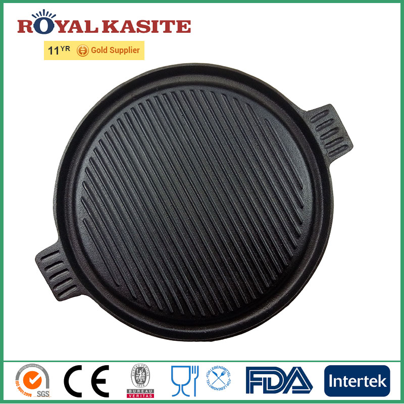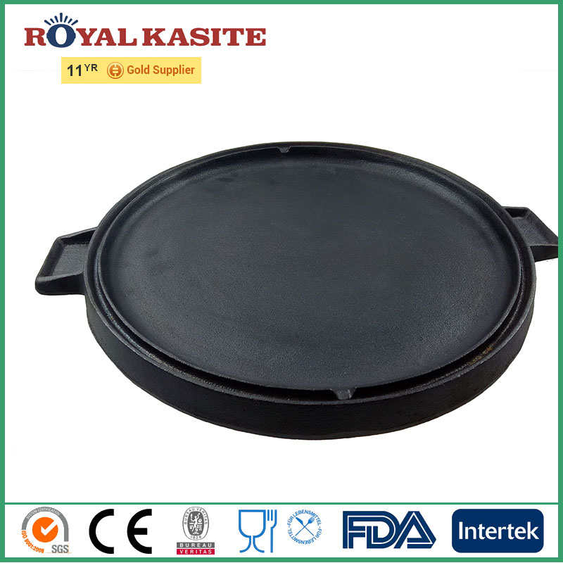 પ્લેટ જાડા કાસ્ટ આયર્નમાંથી બનાવવામાં આવે છે જે કાળા રંગના શણના તેલમાં ડુબાડવામાં આવે છે અને 800-ડિગ્રી ઓવનમાં મૂકવામાં આવે છે, જે શેલનું રક્ષણ બનાવે છે.