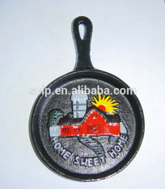 hand-in paint Decorative Cast Iron Frying Pans with house