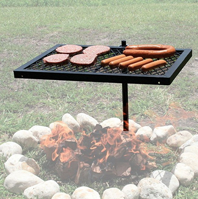 - Solid Metal Construction welded of high quality steel to go over an open campfire