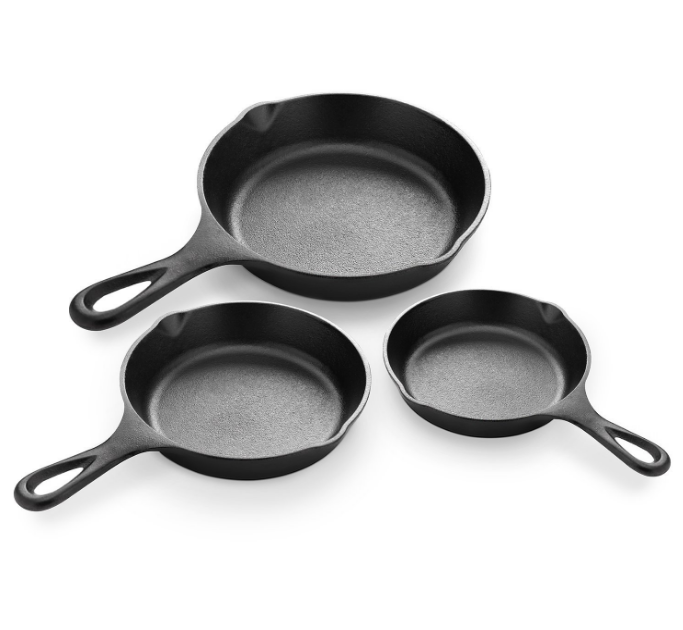 | Production Name | heavy duty preseasoned cast iron skillet 3 pieces fry pan cookware set |