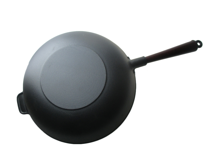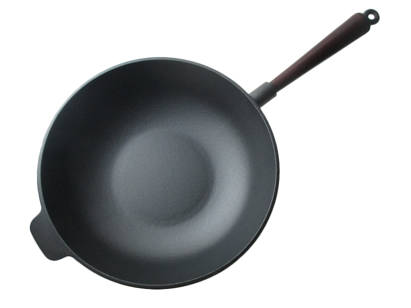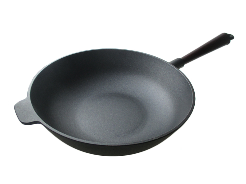 Products:heavy duty wood handle preseasoned cast iron deep fry pan wok skillet