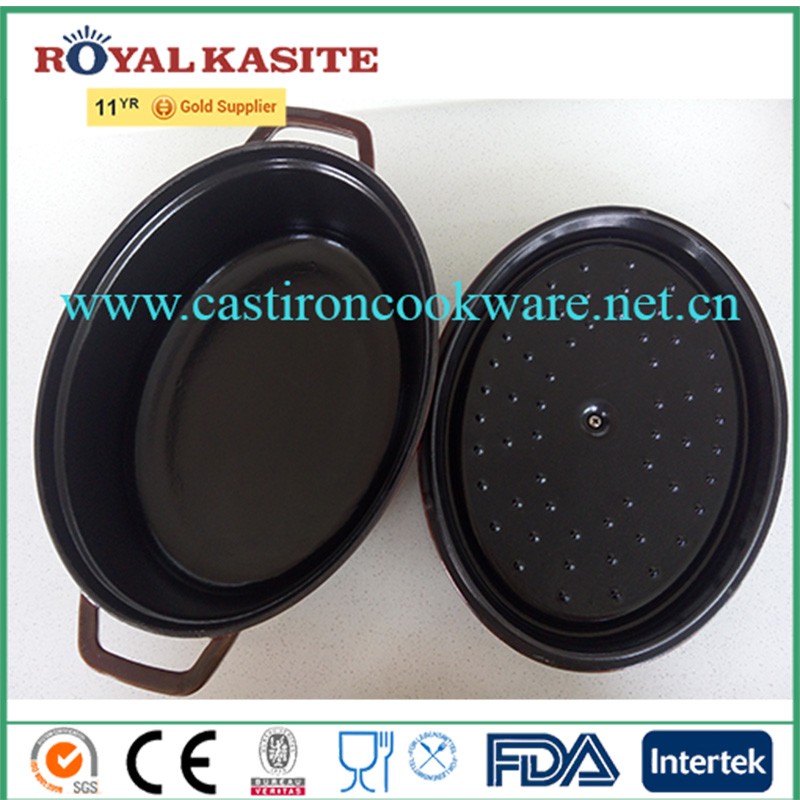 Description Oval Cast iron cookware with enamel coating for wholesale