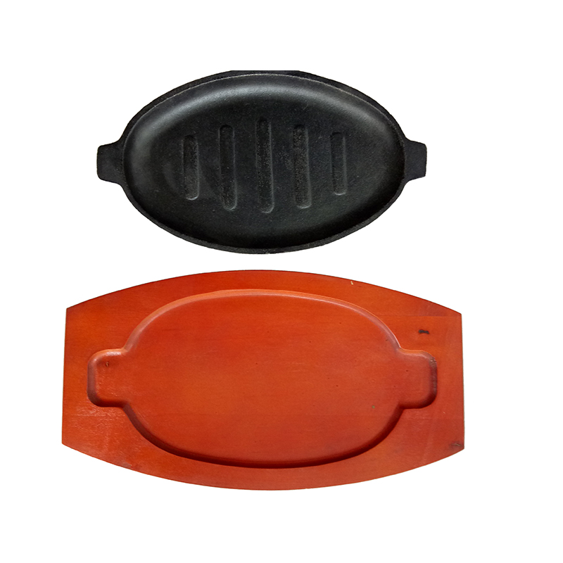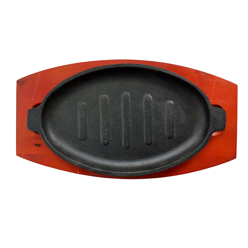 • Large Cast Iron Sizzling Steak Plate with Wooden Base