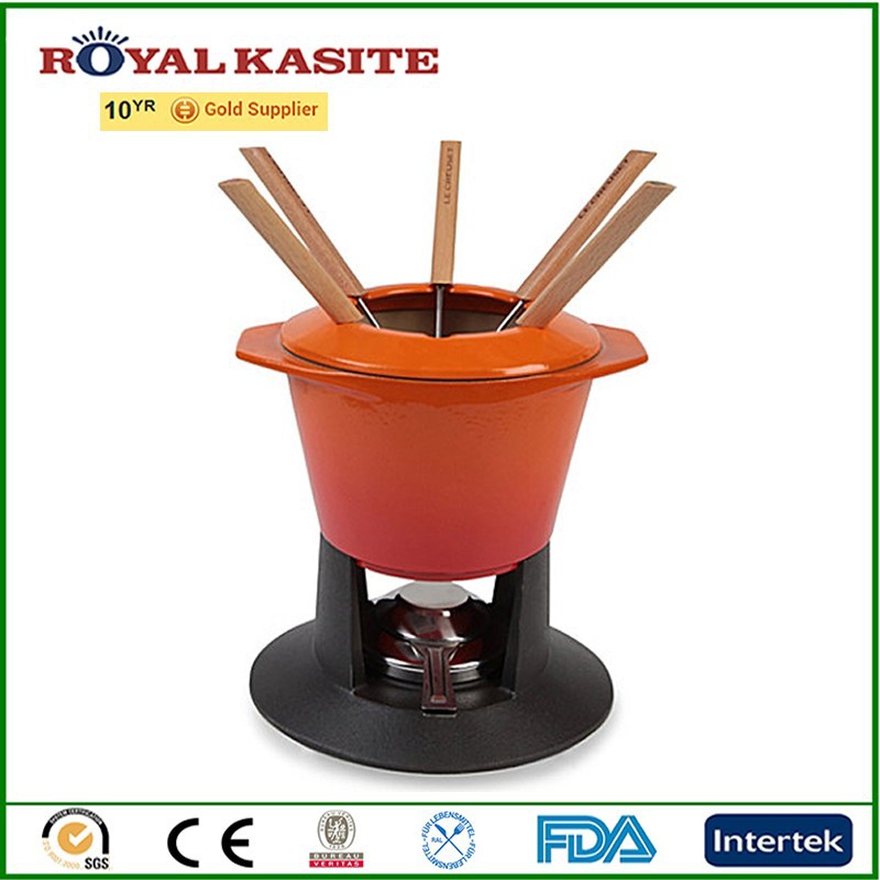 Each piece of cast iron fondue set with a color box and then 4pcs or 6pcs in a brown carton box