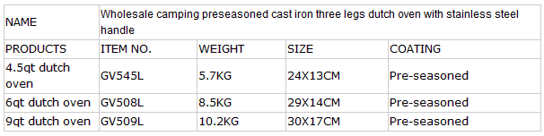 Hot Selling Cast Iron 10.5-inch Dutch Oven Camping Pot, Pre-seasoned
