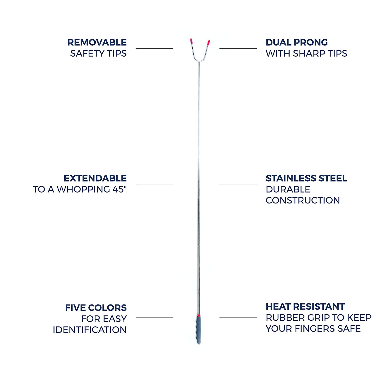 EXTRA LONG EXTENSION! Telescoping construction extends out 45" so you can stay safe from the heat while your food roasts over the fire.