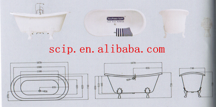 modern color double slipper cast iron bathtubs