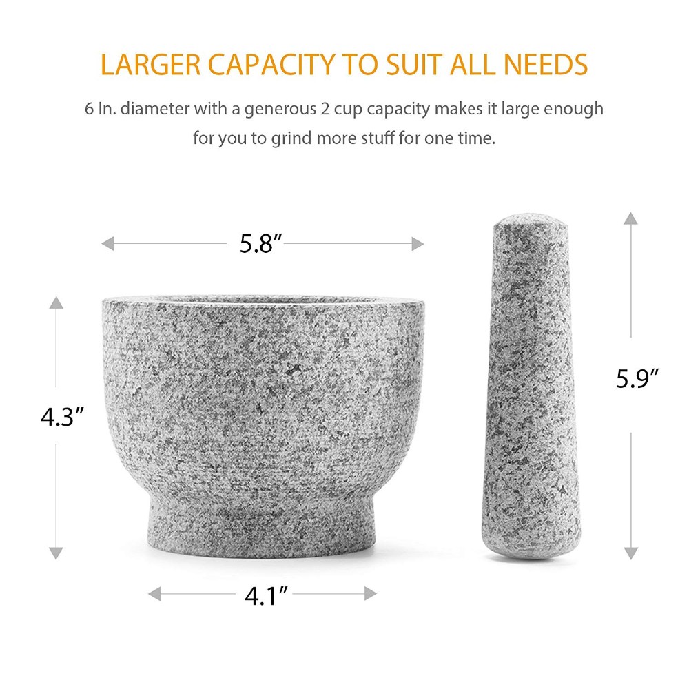 [FDA LISTED & UNPOLISHED GRANITE CONSTRUCTION], FDA listed quality for safety; constructed of unpolished granite, both the mortar and pestle are sturdy enough to crush, grind, mix, and powder stuff like spices, herbs, pesto, dressings, and pills, ideal for blending and serving guacamole or for making pesto and other rustic sauces.
