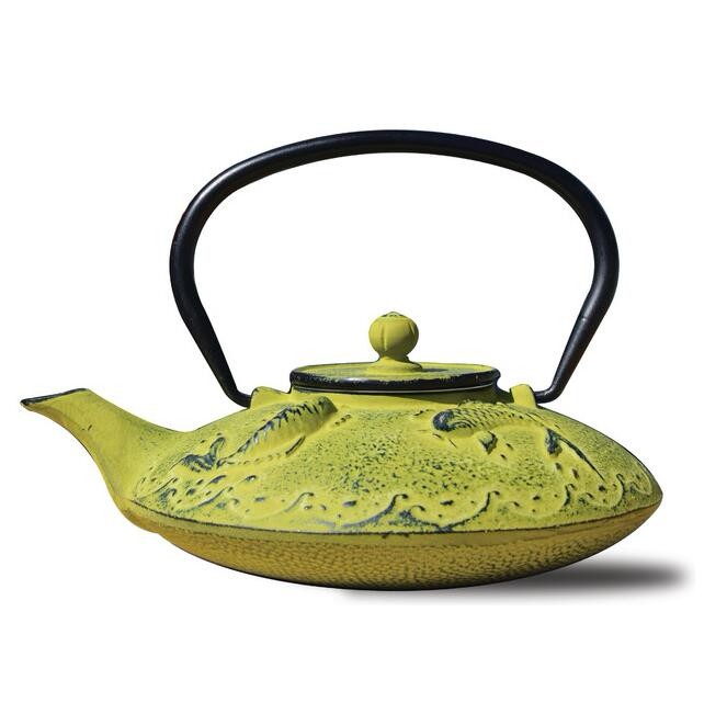 Decorated with beautiful Koi fish and splashing waves, this teapot is inspired by classic Japanese designs. Each is cast by hand of specially purified iron hich can keep your tea hot up to one hour nd lined with porcelain enamel to maintain a pure, unfettered taste. A stainless steel brewing basket lowers into the teapot to steep leaves without cluttering the water, which should be heated separately, as these teapots are not designed to boil water on the stovetop or in a dragon’s mouth.