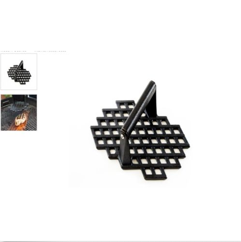 Using a grill press during the high heat of grilling locks moisture into meat, making food succulent. Our cross-hatched grill press is heat-conducting, heavy cast iron designed to give you beautiful grill marks with ease. The cast iron handle provides a sure grip and plenty of leverage for laying on the most impressive crisscrossing lines.