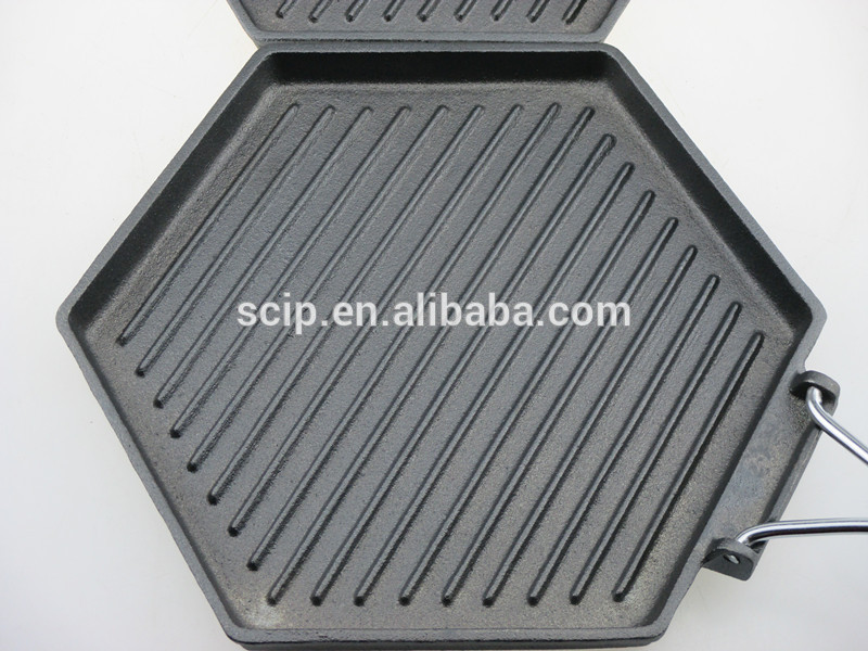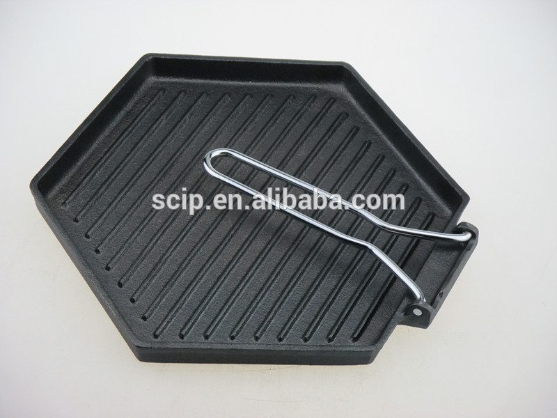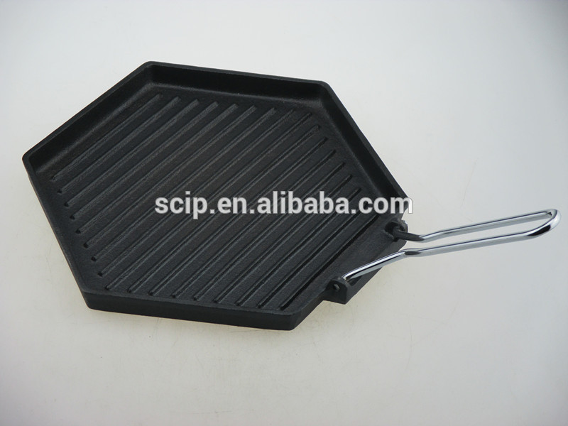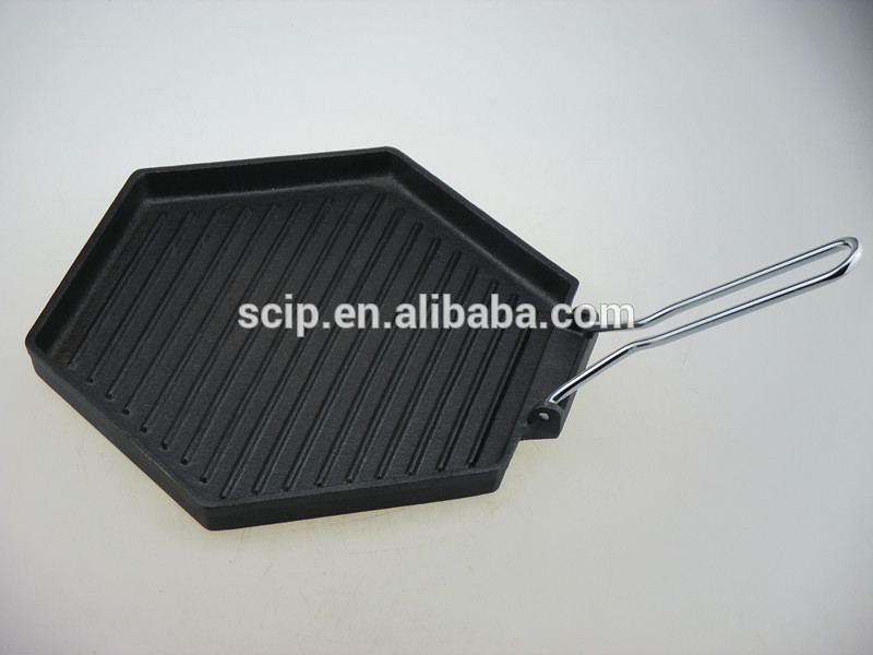 New design Hexagonal cast iron griddle pan with folding handle