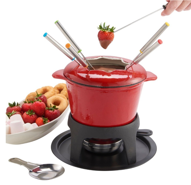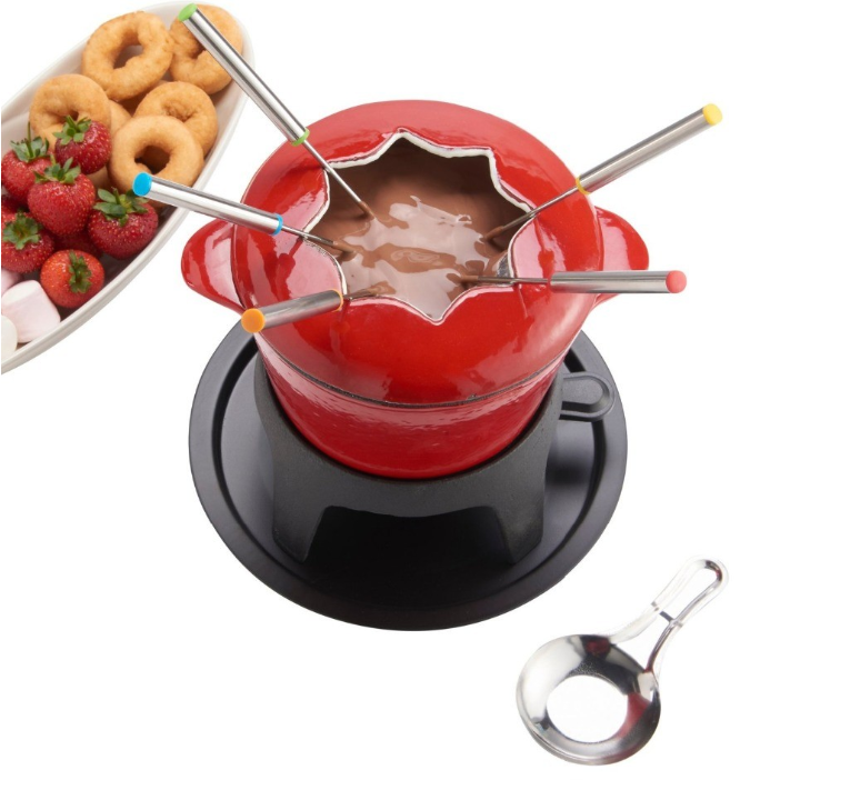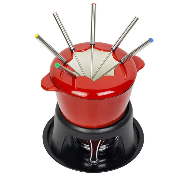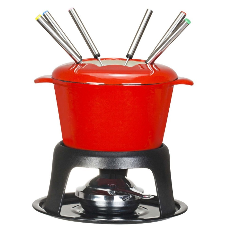 Perfect for entertaining and serving delicious Fondue recipes, set allows you to cook Fondue on a stovetop and then beautifully serve it at the table for everyone to enjoy. Cast iron Fondue pot provides even heating and optimal heat retention.