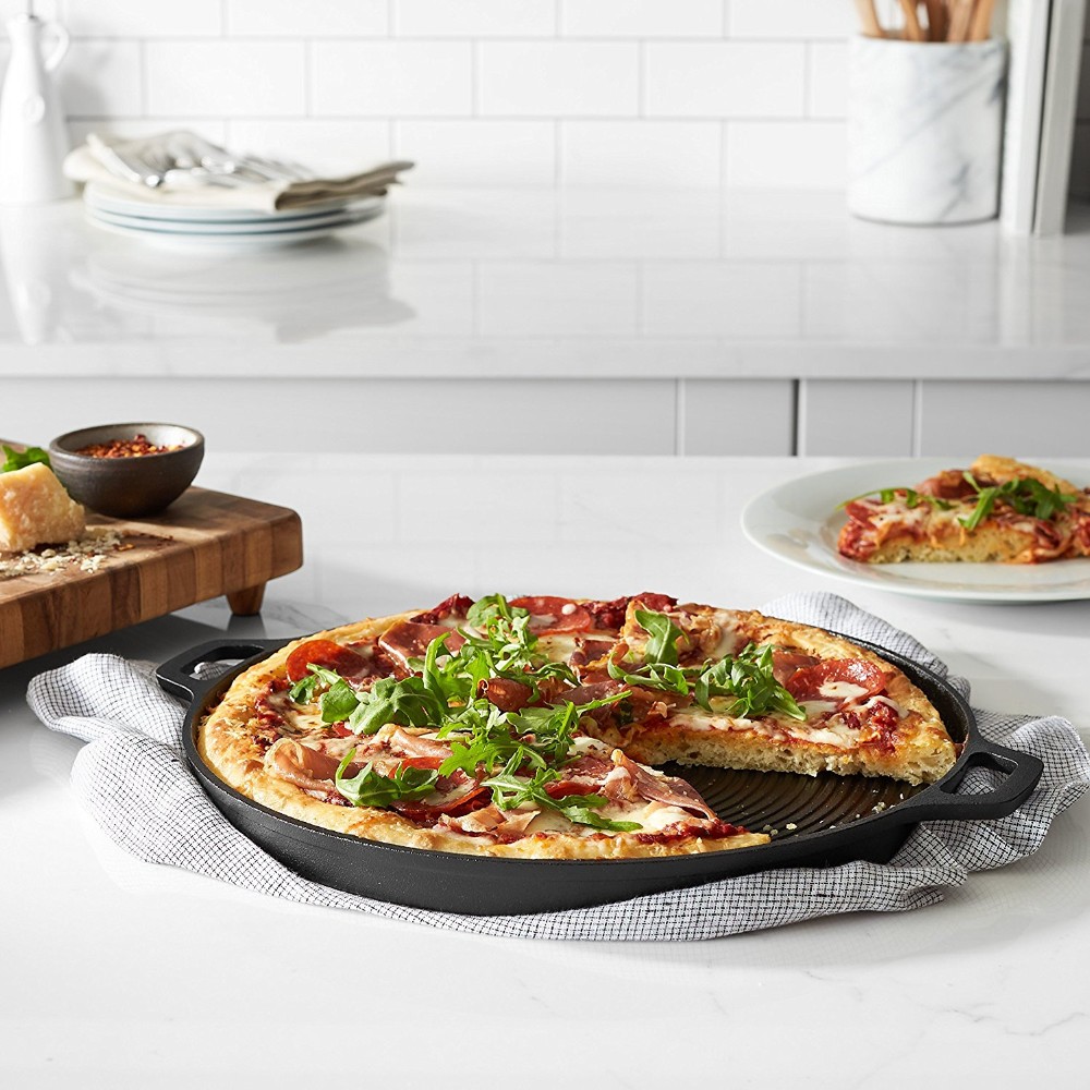 13.5-inch pre-seasoned cast-iron pizza pan for baking pizza to delicious perfection
