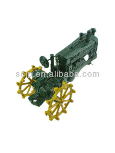 It is an old-fashion craft tractor, drawing by hand. is a good garden or home decoration.